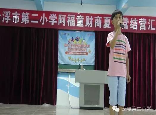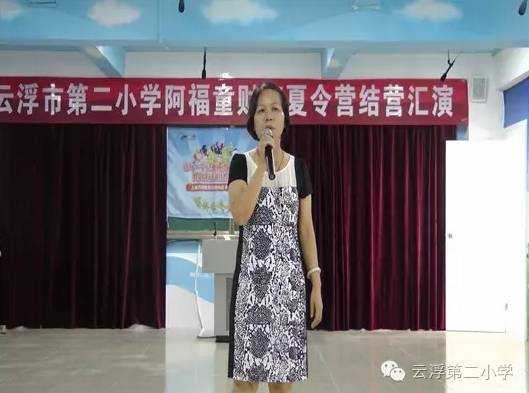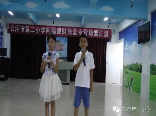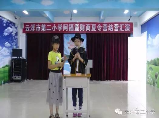 首先由云浮市第二小学肖建英副校长对为期6天的阿福童财商夏令营作总结,以及对结营汇演作致辞。