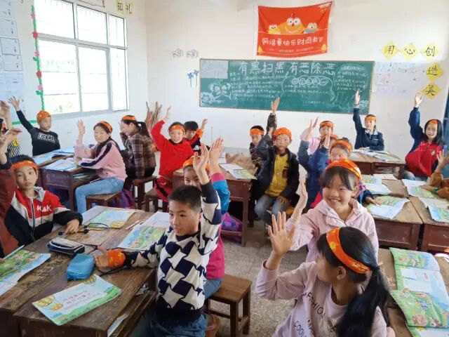 孩子们踊跃举手回答问题